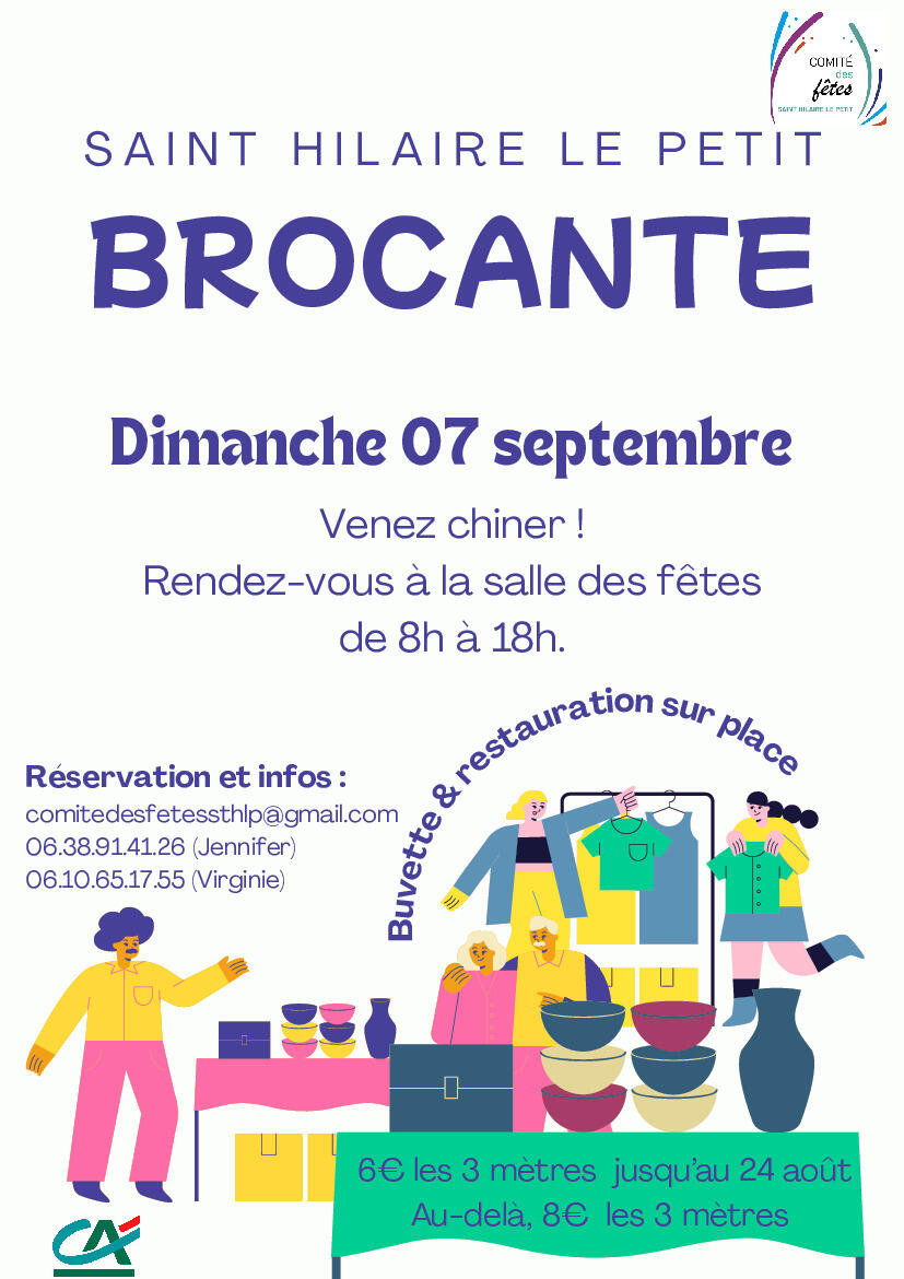 La brocante de St Hilaire-le Petit aura lieu le dimanche 7 septembre.