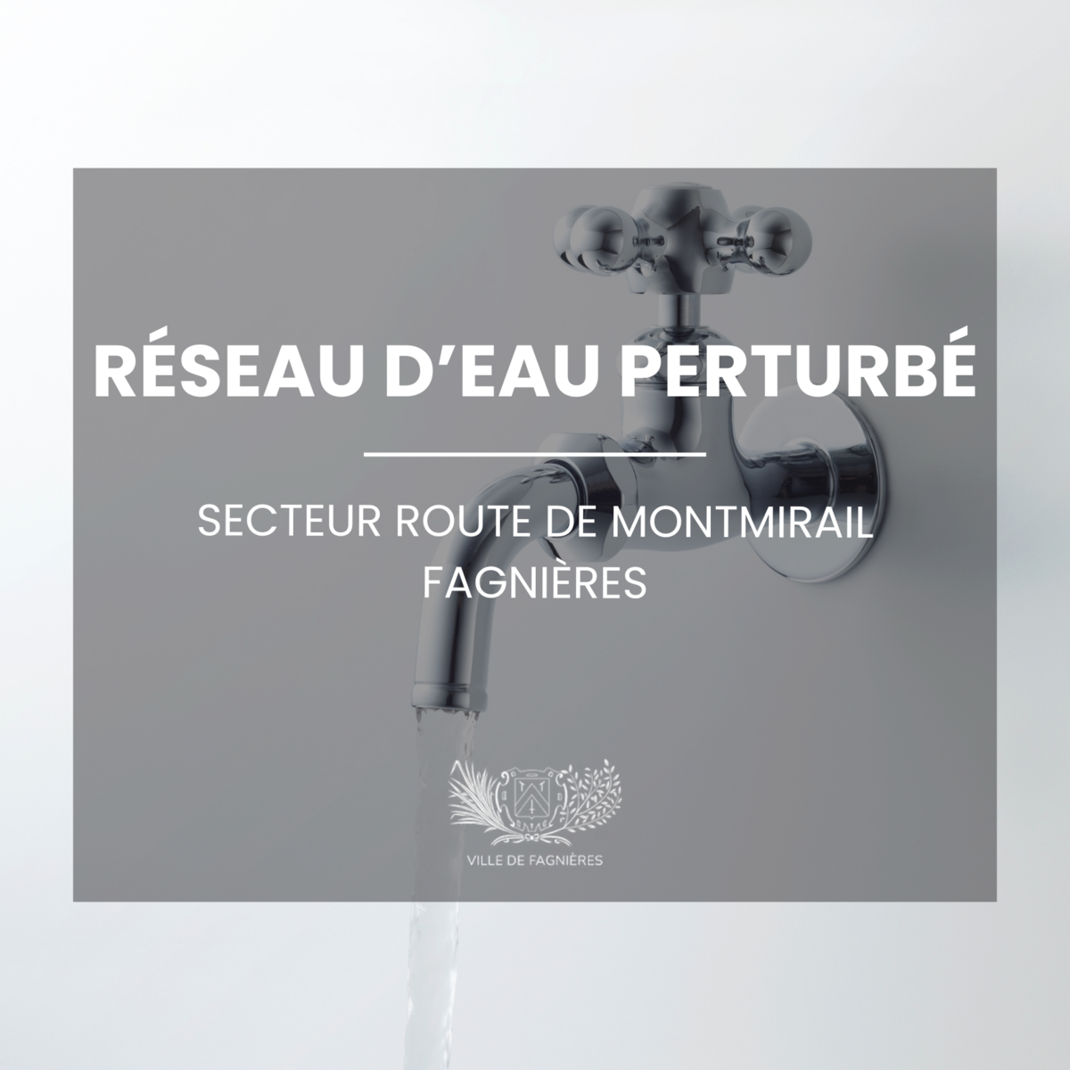 Nous vous informons que le réseau de distribution d’eau potable est actuellement perturbé sur le secteur de la route de Montmirail à Fagnières.