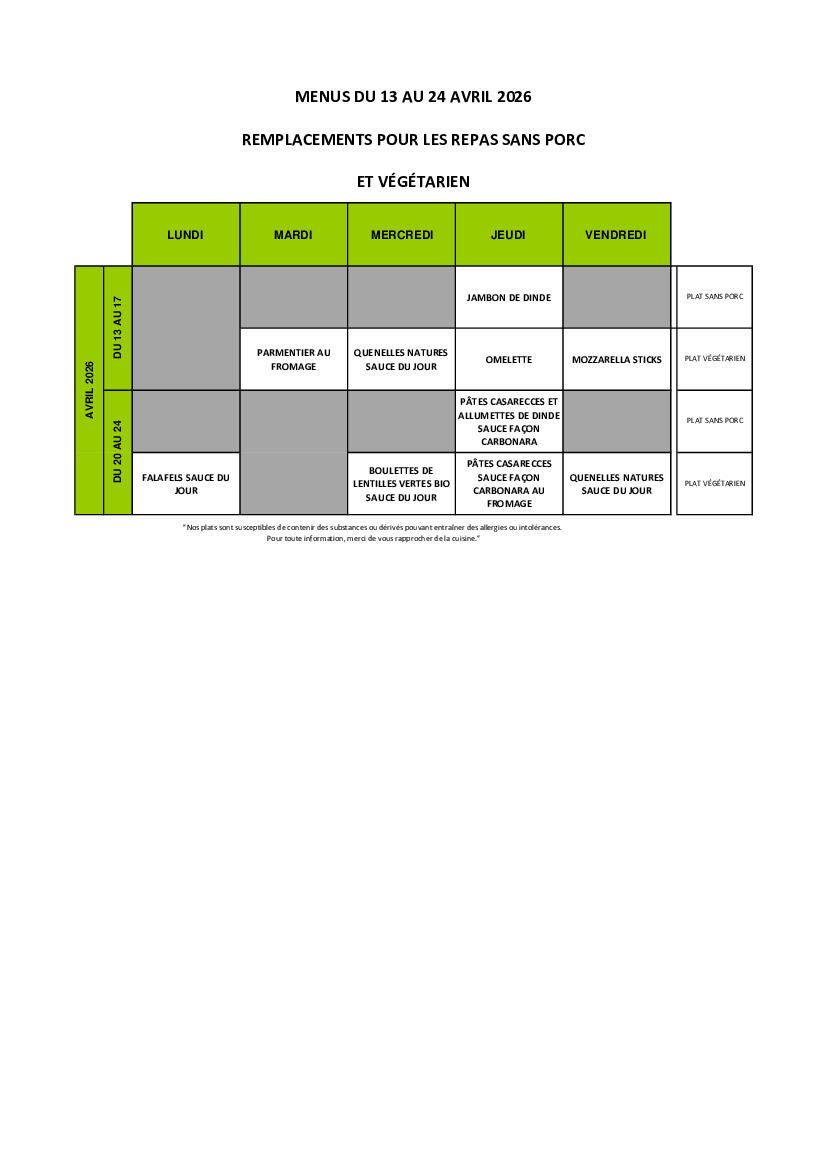 menu scolaire