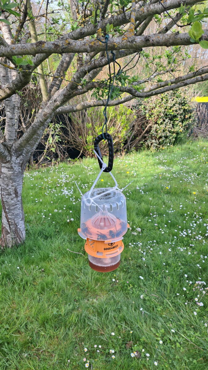 Durant la période printanière, les frelons asiatiques font leur retour. Alerté par un habitant de la commune, celui-ci nous confirmait la prise de nombreuses reines en quelques jours après la pose d’un piège à insectes. (Voir photo)                                     Une reine fondatrice capturée, c’est potentiellement un nid en moins.