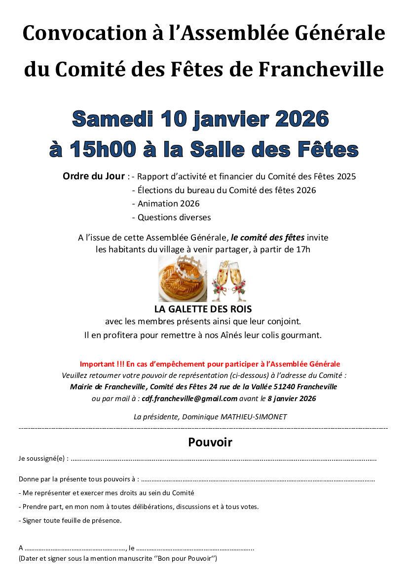 RAPPEL. Comité des Fêtes de Franchevillle.