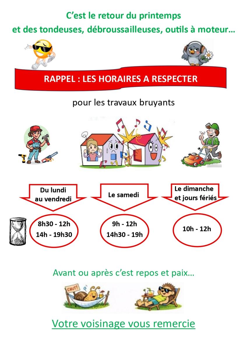 Votre mairie / Actualités / Rappel des horaires à respecter