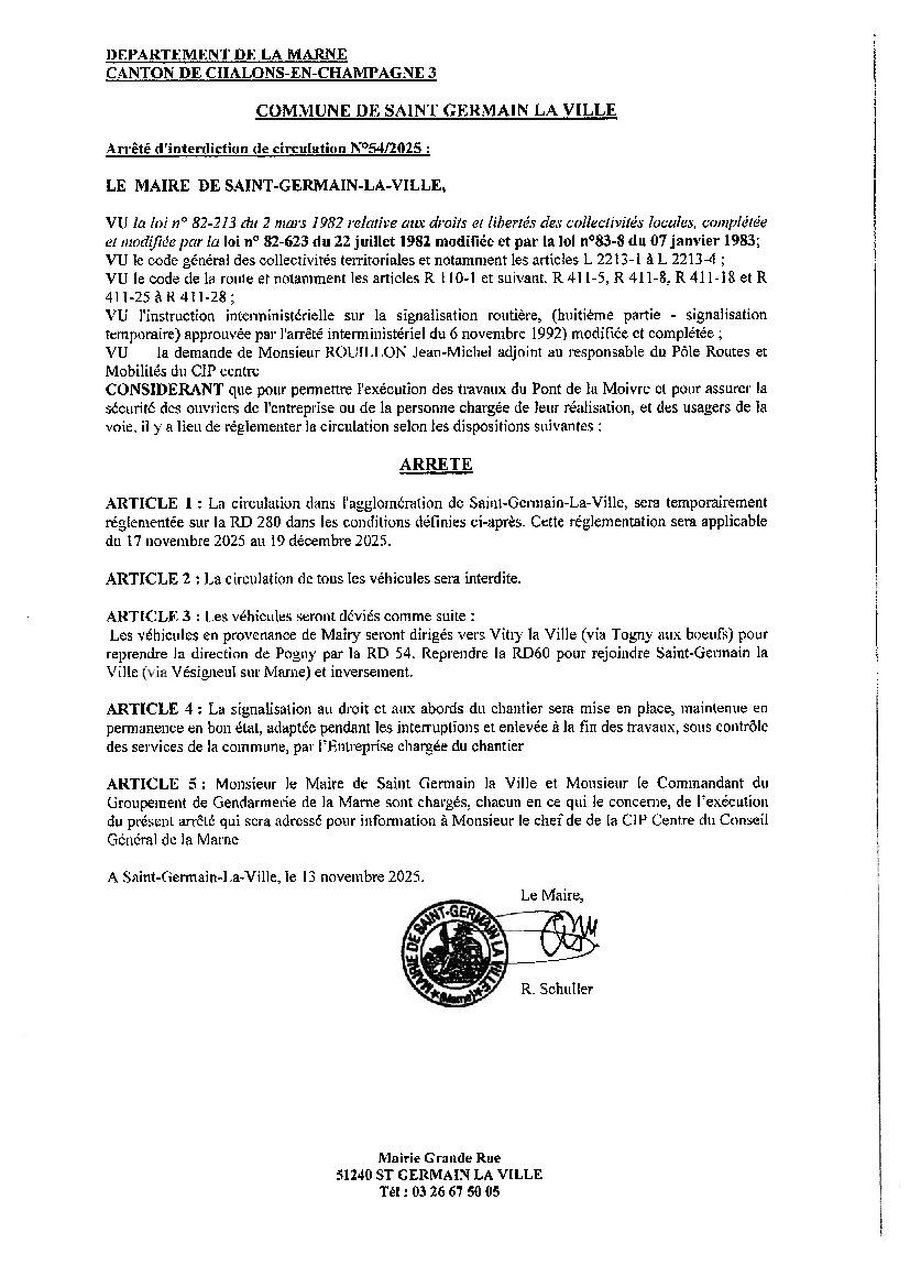 Fermeture de la RD 280 entre Mairy et Saint-Germain-la-Ville