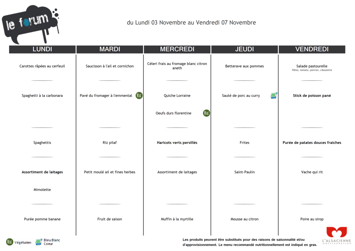 Menus périscolaires du 24 novembre au 07 décembre 2025