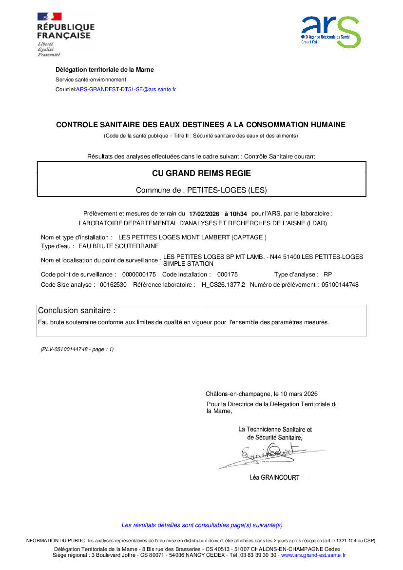 Bulletin analyse d'eau du 10-03-2026