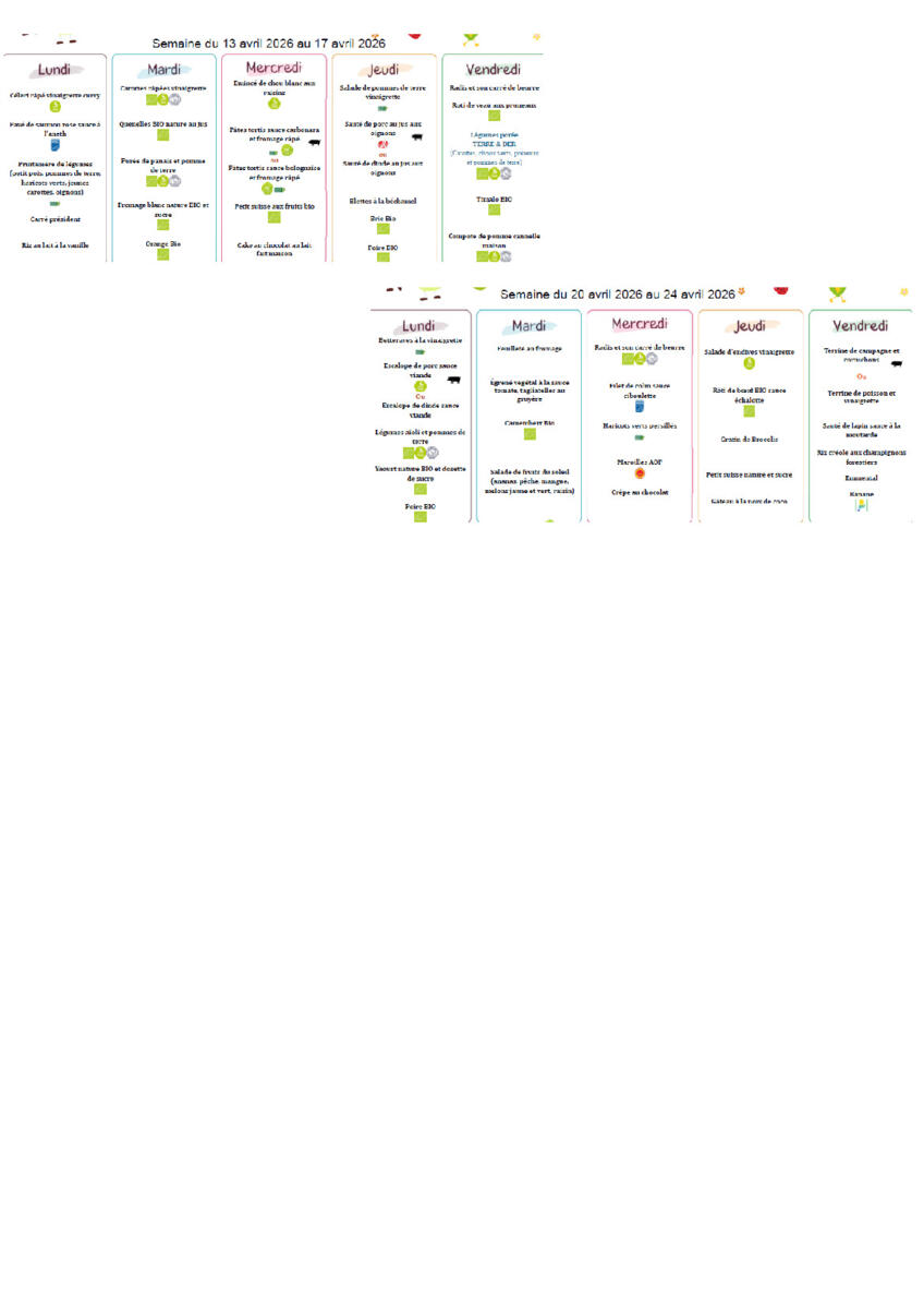 Menus scolaires 11/02/2026 Vous trouverez ci-joints les menus scolaires de l'école de Vanault les Dames
