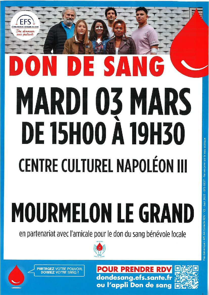Don du sang Mourmelon-le-Grand mardi 03 mars 2026