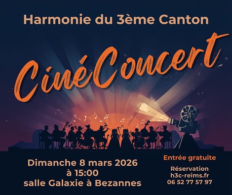 C'est avec un grand plaisir que nous vous donnons rendez-vous le dimanche 8 mars à 15h00 à la salle Galaxie de Bezannes pour notre premier ciné-concert.