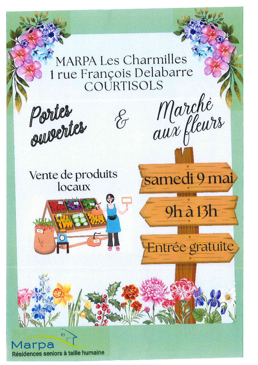 Portes ouvertes et Marché aux fleurs 12/03/2026 Samedi 9 mai 2026 de 9h00 à 13h00 MARPA Les Charmilles COURTISOLS
