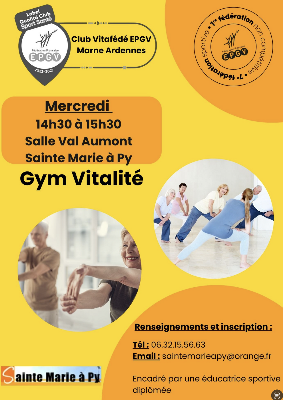 Reprise de la gym Vitalité (séniors) du 10 septembre 2025 au 1er juillet 2026 inclus en suivant le calendrier scolaire, à la même heure que l'an dernier, à la salle Val Aumont.