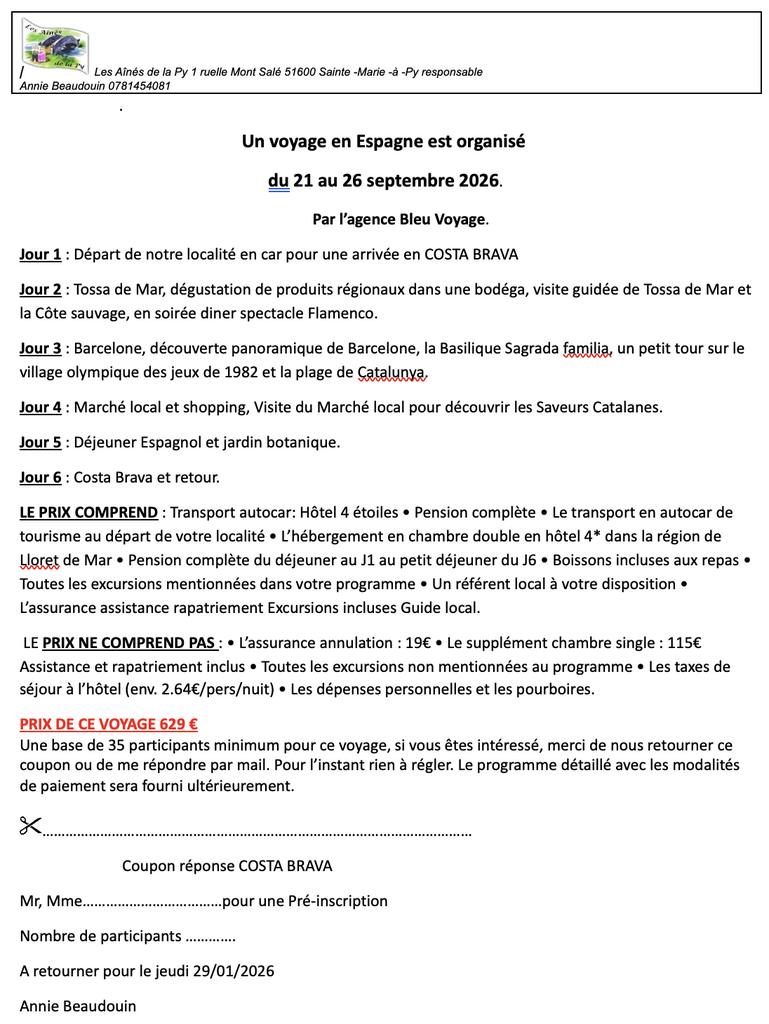 Les Aînés de la Py vous proposent un voyage en Espagne du 21 au 27 septembre 2026.