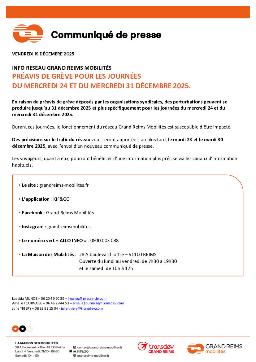 PRÉAVIS DE GRÈVE REIMS MOBILITÉS