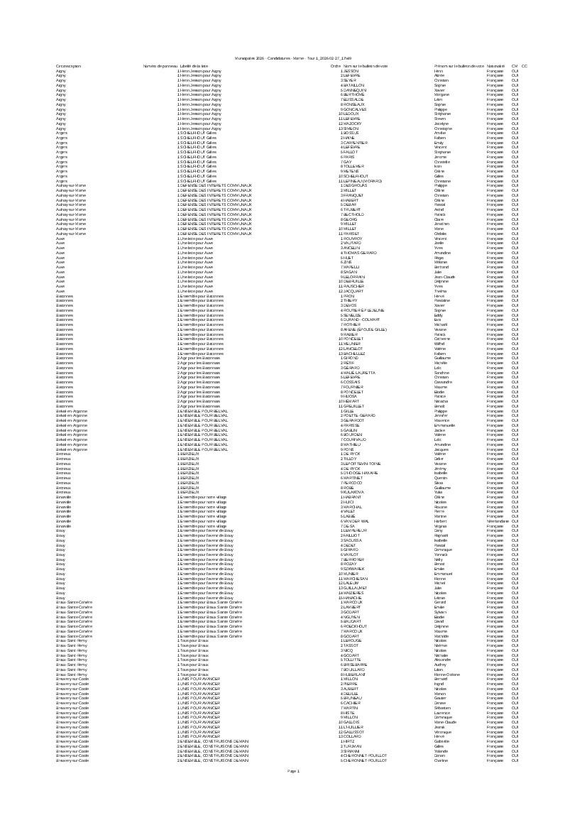 Vous trouverez en pj l'arrêté préfectoral ainsi que son annexe listant les candidats des communes marnaises :