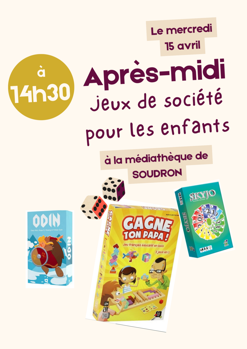 Animations à la médiathèque de Soudron 14/04/2026 Vous trouverez ci-dessous le programme des prochaines animations de la médiathèque.