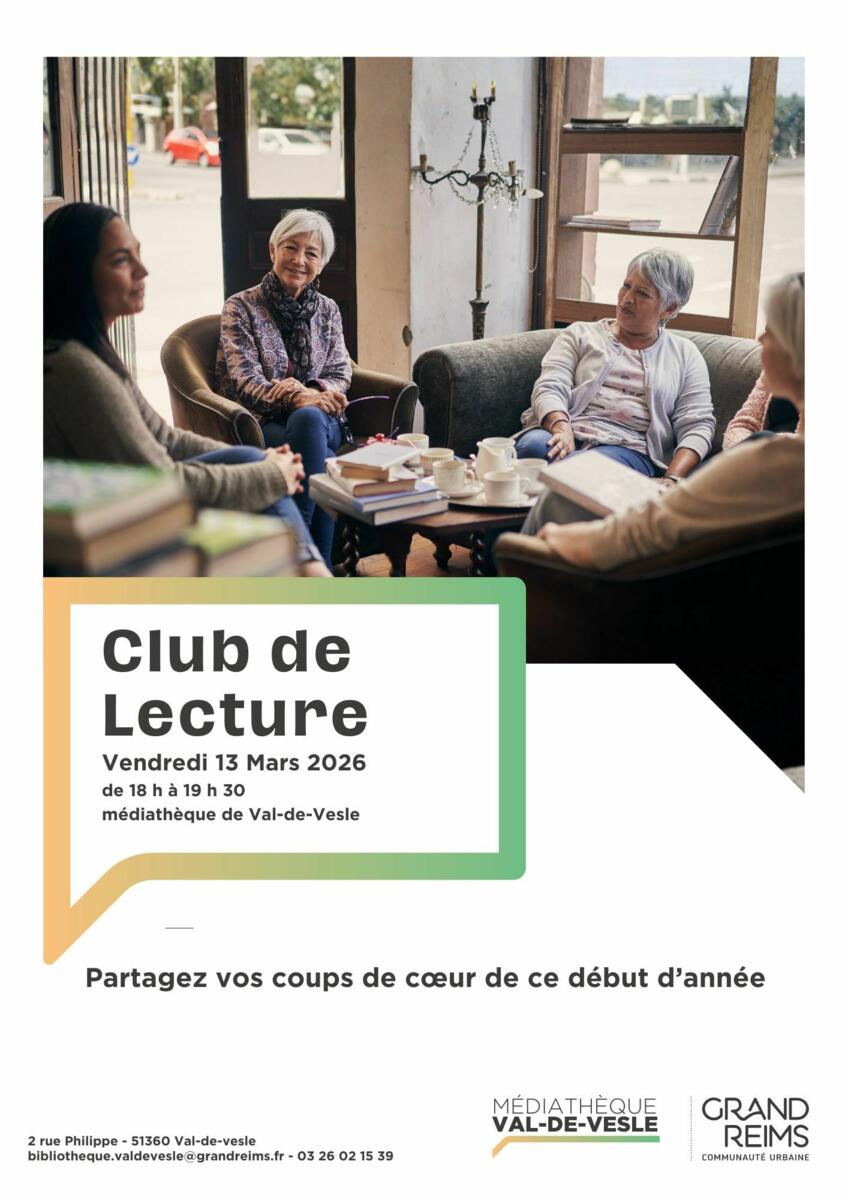 Le club lecture se réunira vendredi 13 mars à 18h à la médiathèque de Val-de-Vesle.
