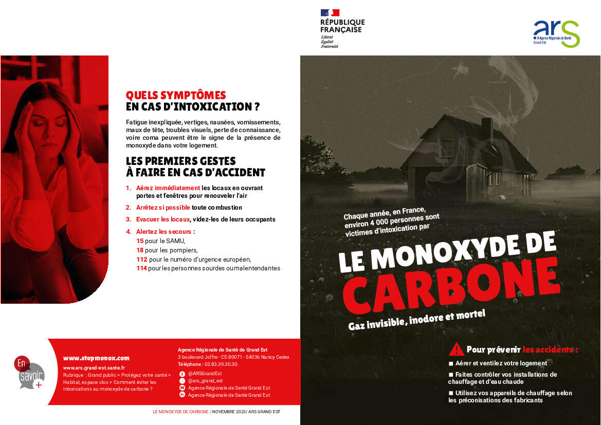- sur le site de l'ARS www.ars.grand-est.sante.fr (rubrique grand public/ protéger votre santé / comment éviter les intoxications