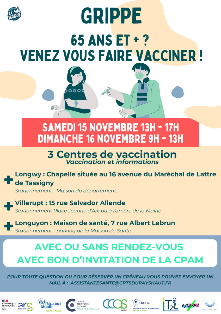 Dans le cadre d'un projet d'accélération de la vaccination antigrippale saisonnière porté par la CPAM et l'ARS Grand Est, en lien avec le Conseil Territorial de Santé du 54, la CPTS du Pays Haut a été retenue comme territoire pilote, en raison d'un taux de couverture vaccinale encore faible.