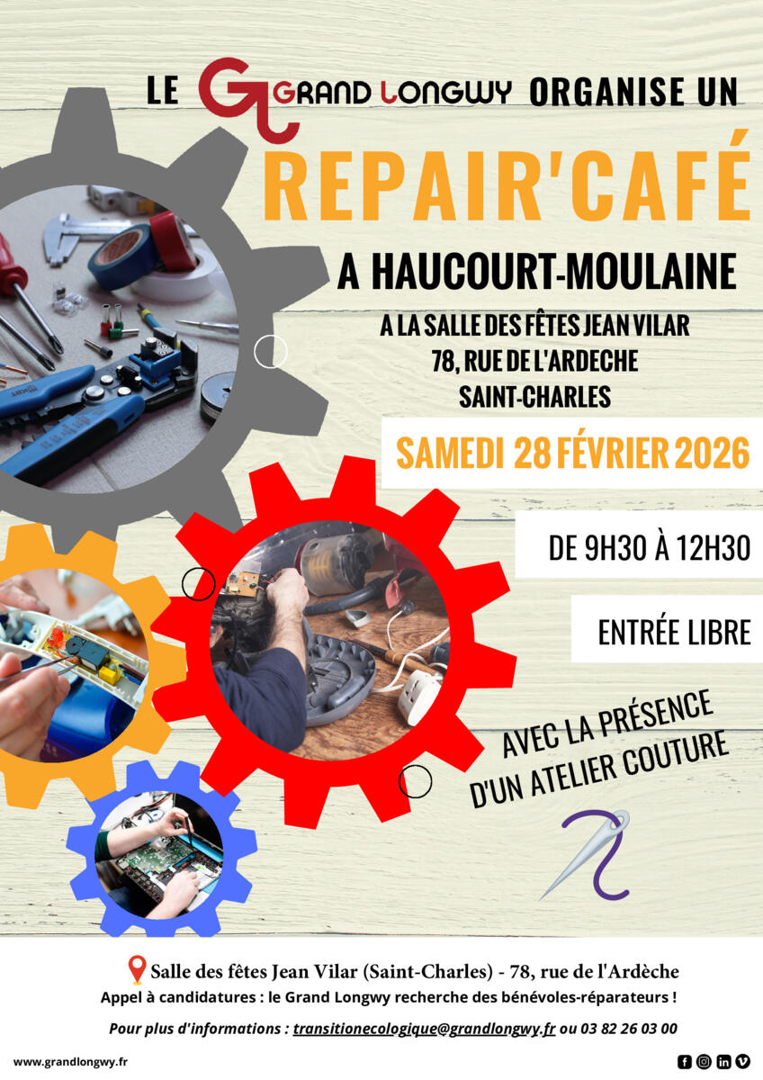 L’Agglomération du Grand Longwy et la Commune d'Haucourt Moulaine organisent le prochain Repair Café :