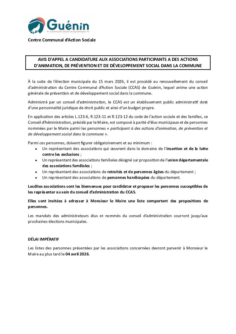 Appel à candidature – Renouvellement du Conseil d’Administration du CCAS