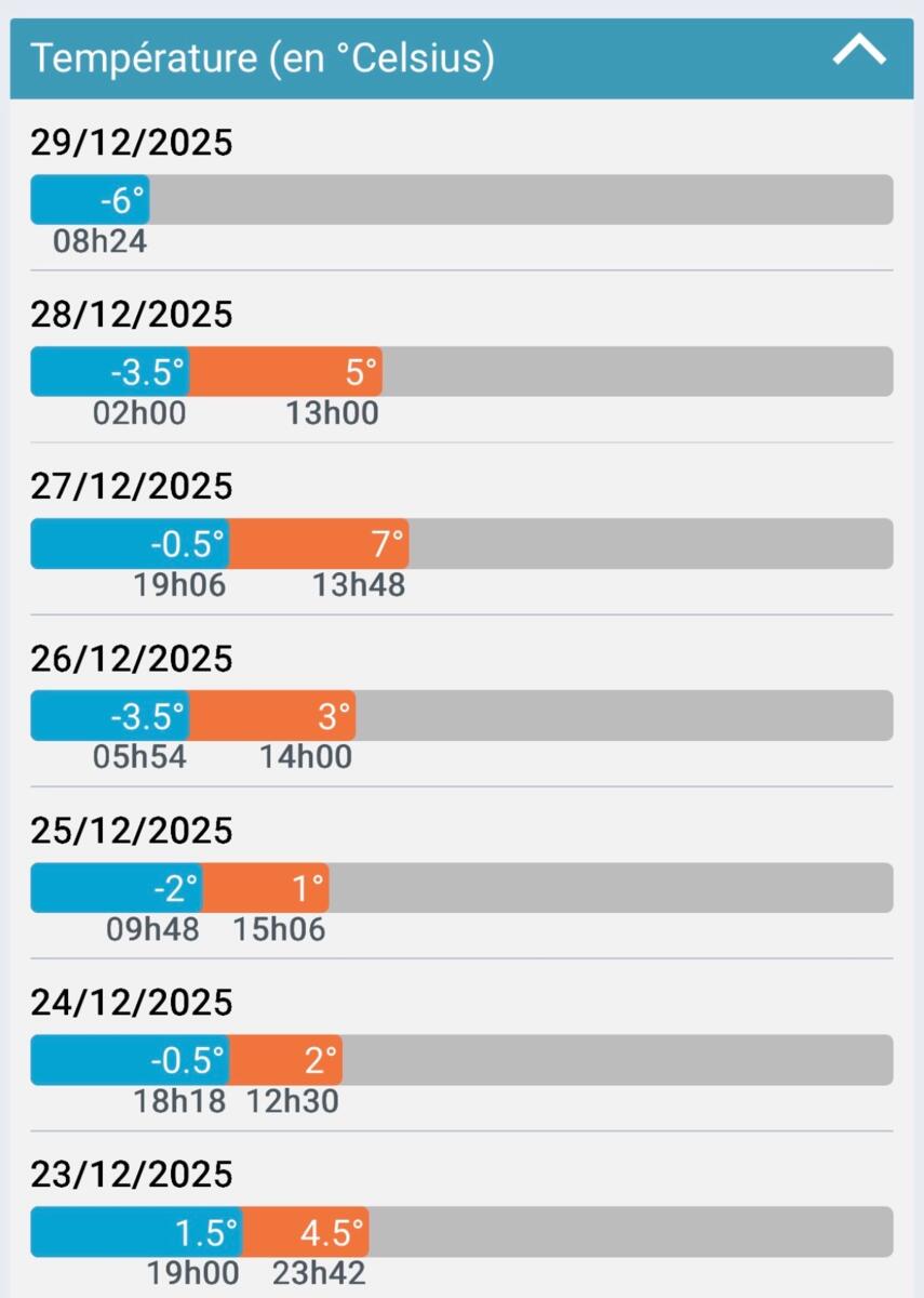 Petit point météo en ce mardi 30 décembre 2025, avec la météo heure par heure, une prévision sur quelques jours et un retour sur les derniers jours.
