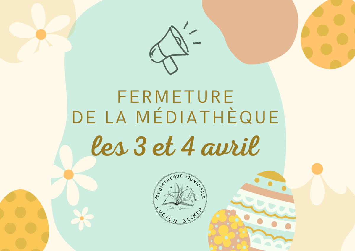 Fermeture de la médiathèque les 3 et 4 avril 📖
