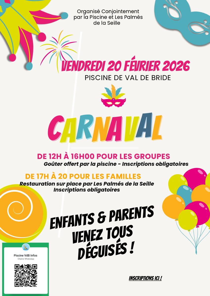 Carnaval à la piscine de Val-de-Bride le vendredi 20/02 🏊🎉