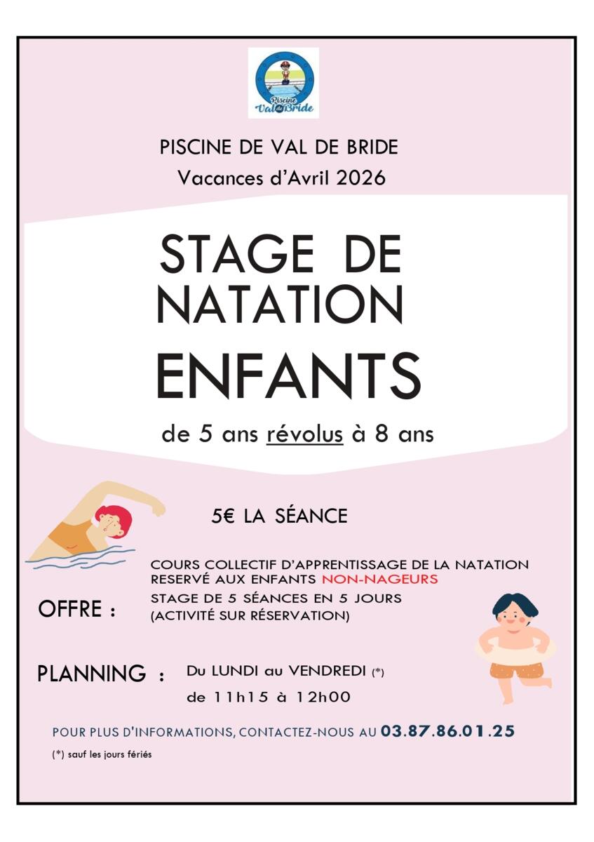 👦👧 Un stage de natation enfants est également au programme (sur réservation).