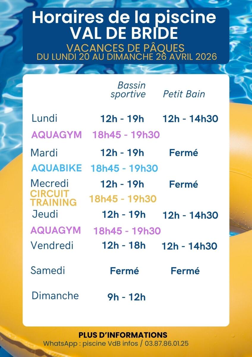🏊🍃 À l'occasion des vacances de printemps, la piscine intercommunale de Val-de-Bride vous propose une sélection d'activités que vous pourrez retrouver dans le programme ci-dessous 👇