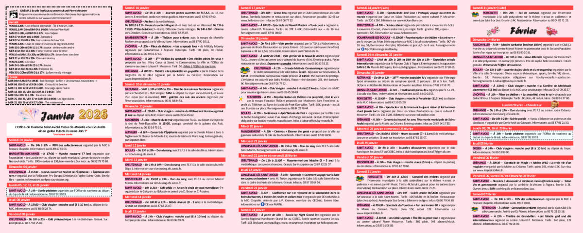 Calendrier des Manifestations Janvier/Fevrier 2026