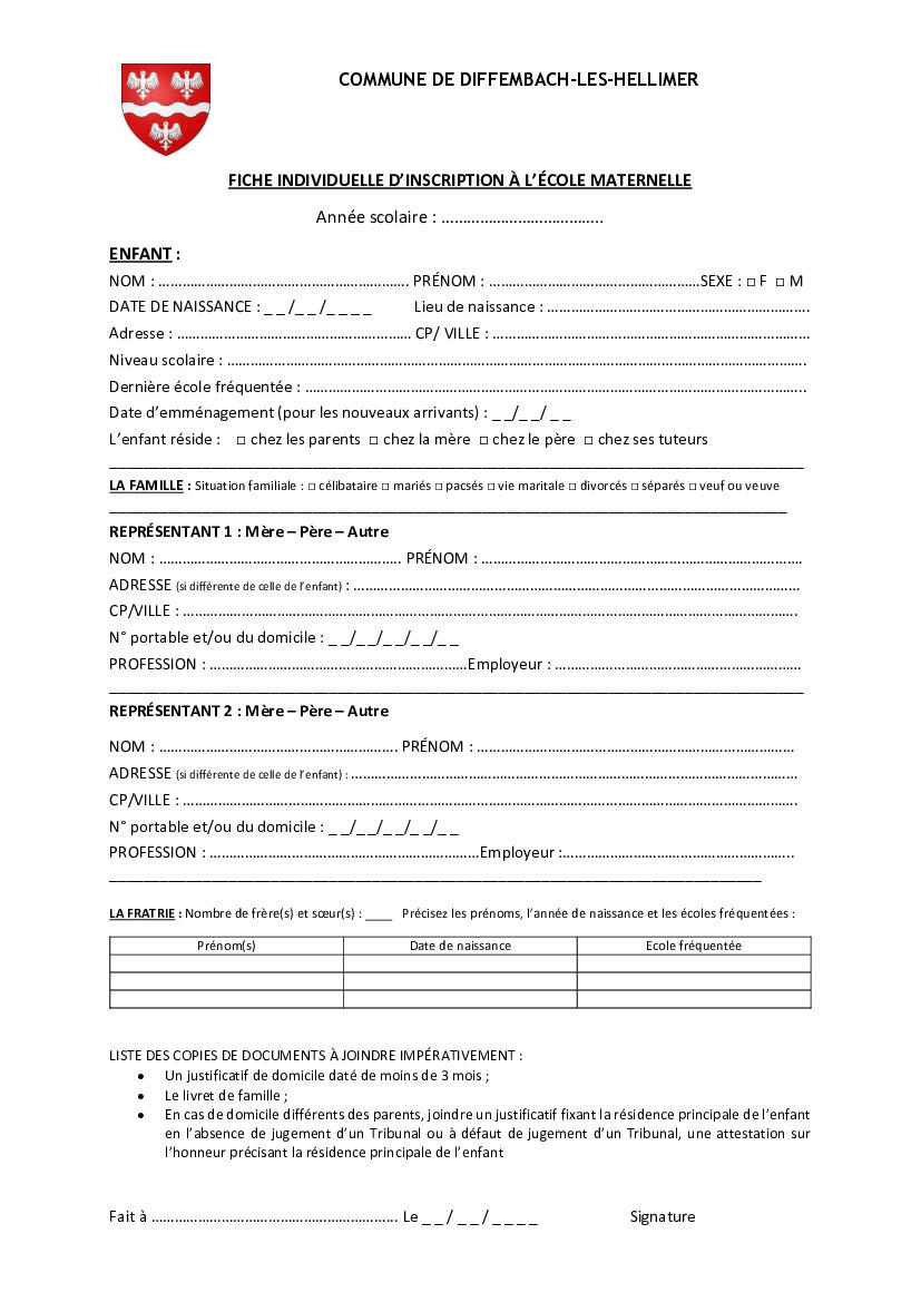 Inscription à l'école maternelle