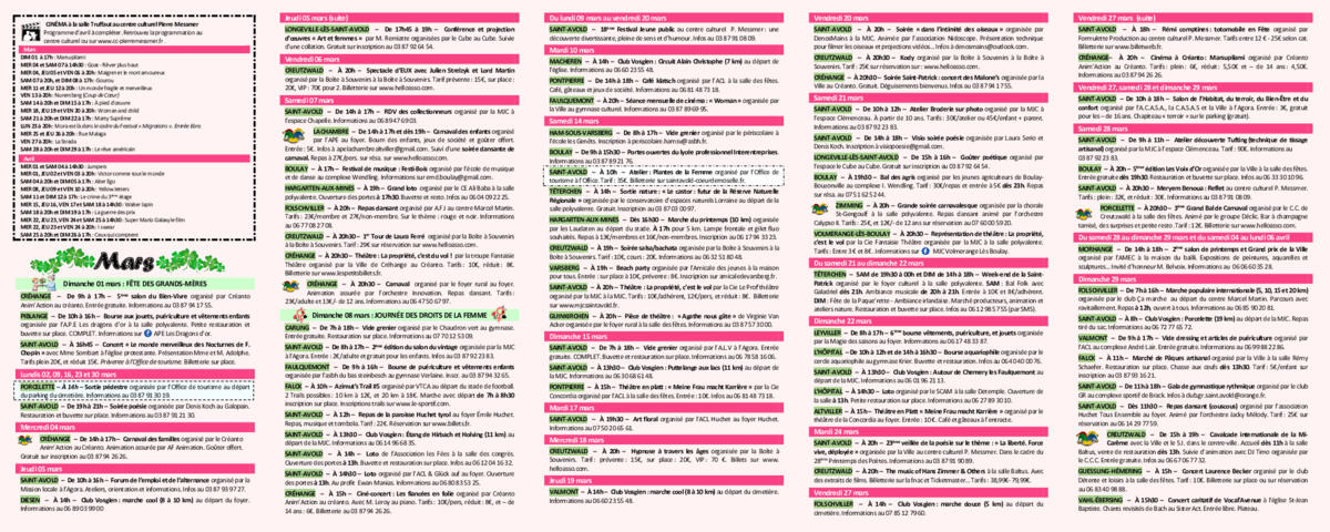 Votre mairie / Actualités / Calendrier des Manifestations Mars/Avril 2026