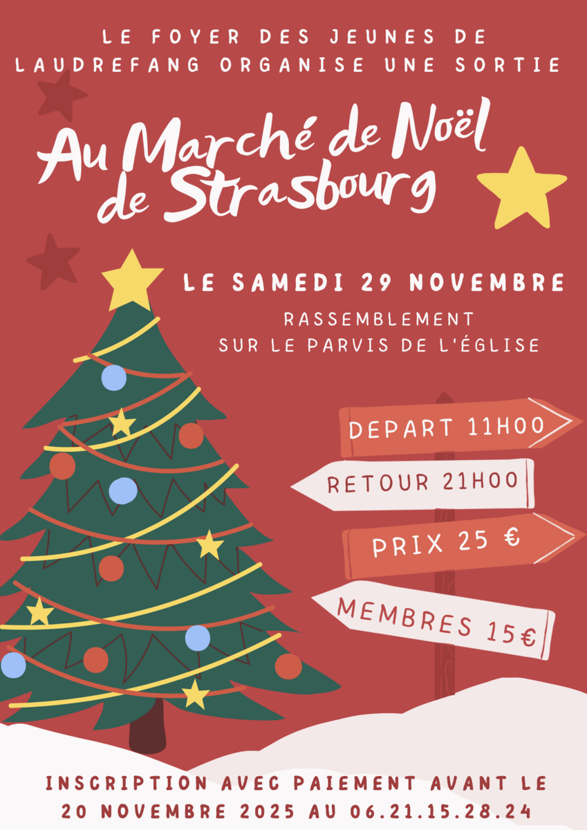 Marché De Noël De Strasbourg 25/11/2025 Suite à deux désistements, il y a reste deux places pour la sortie au Marché de Noël de Strasbourg ce samedi 29 novembre 2025.