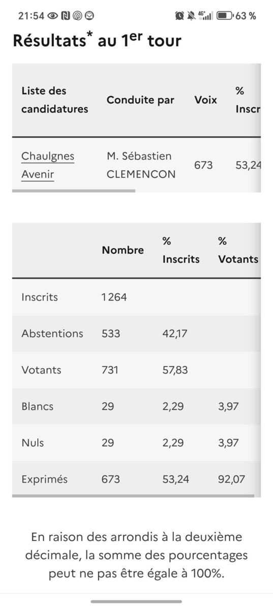 La liste menée par Sébastien Clemençon est élue à 92.07% avec 673 voix sur 731 votants.29 blancs29 nuls