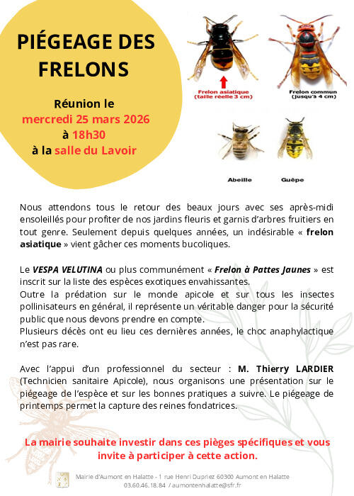 Piégeage des frelons: réunion le 25 mars 2026 avec la mairie