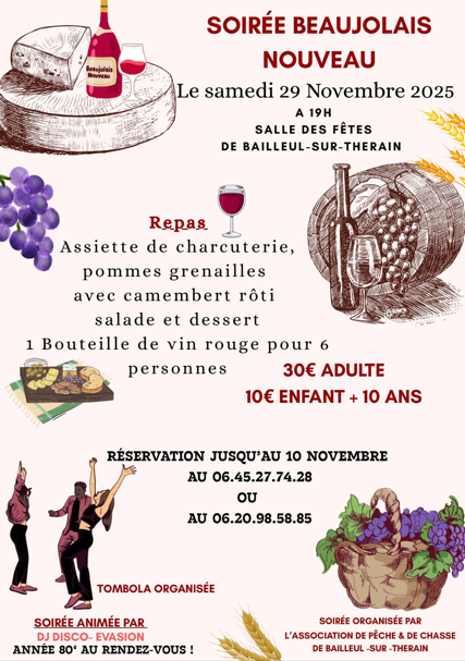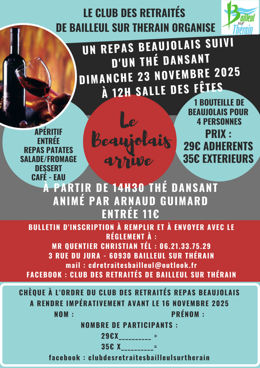 Repas Beaujolais et thé dansant 23 novembre