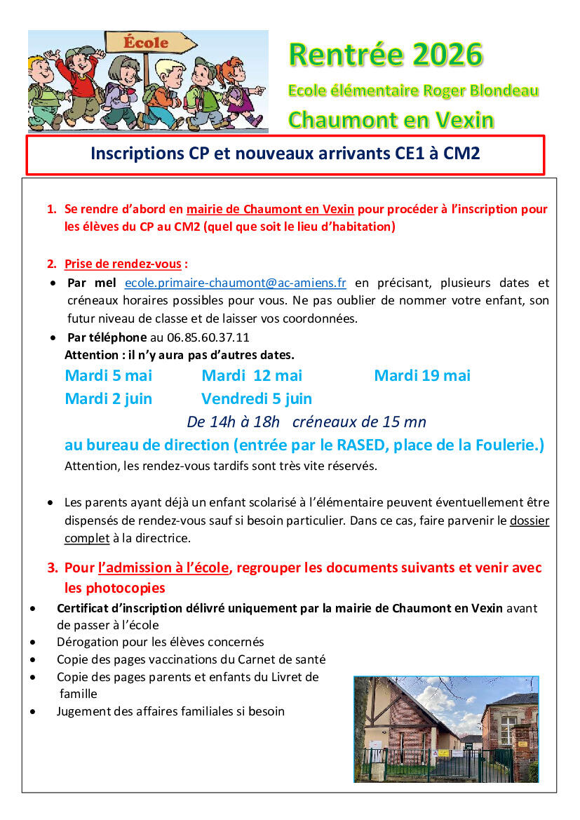 INSCRIPTIONS POUR L'ANNEE SCOLAIRE 2026/2027