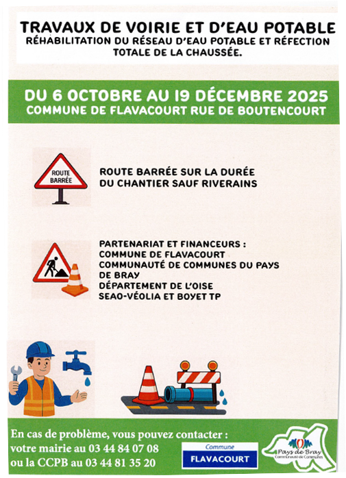 TRAVAUX VOIRIE ET EAU POTABLE RUE DE BOUTENCOURT