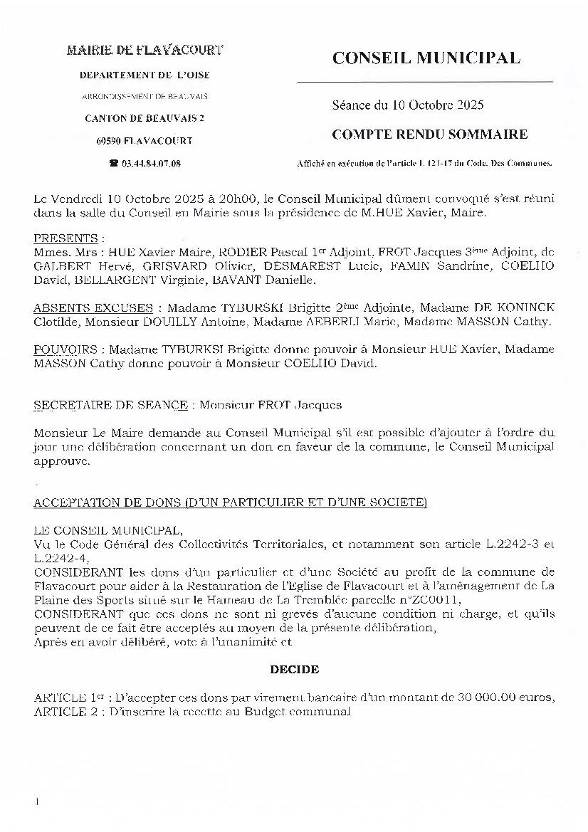 COMPTE RENDU CONSEIL MUNICIPAL DU 10 OCTOBRE 2025