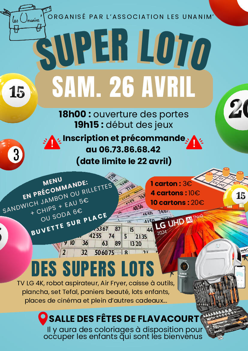 🎉 Loto de l'association Les Unanim' – Samedi 26 avril 🎉