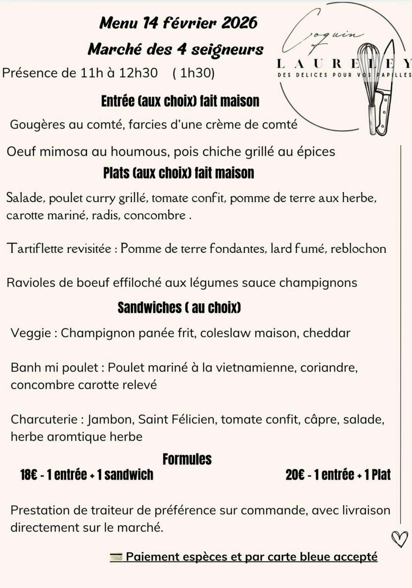 Précisions sur la prestation du traiteur : de préférence sur commande et livraison sur le marché entre 10h30 et 12h30. ☎️06.69.34.21.95.