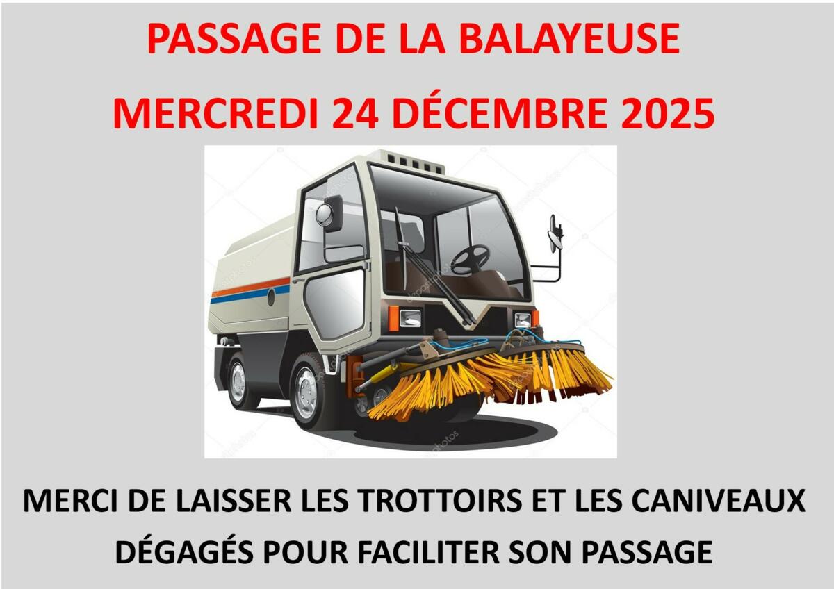 Le passage de la balayeuse est programmé dans l’ensemble des rues de la commune de Lormaison le mercredi 24 décembre 2025.