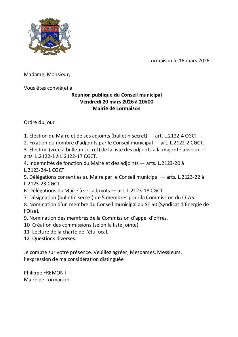 Votre mairie / Actualités / Lormaison; Conseil municipal