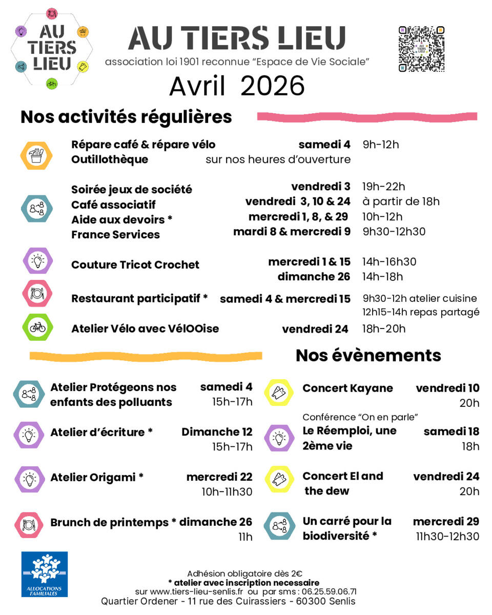 Newsletter et programme TIERS LIEU SENLIS AVRIL 2026