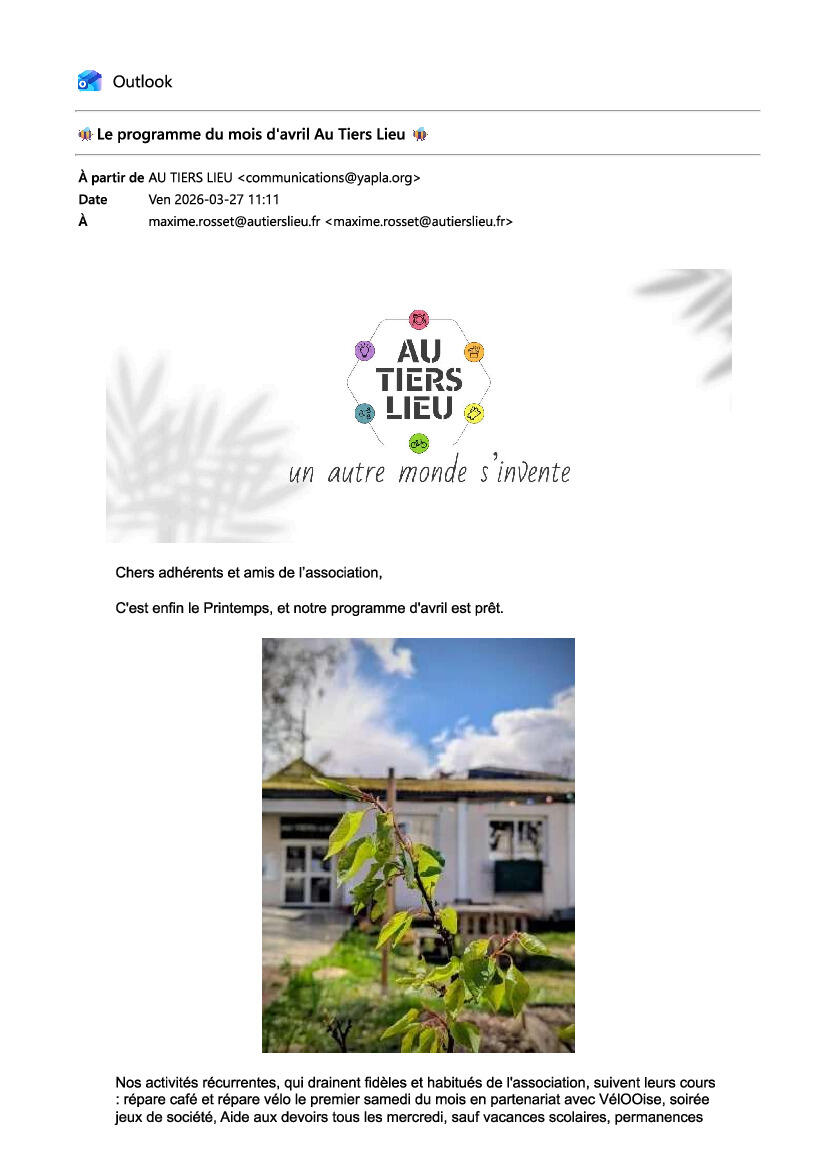 Newsletter et programme TIERS LIEU SENLIS AVRIL 2026
