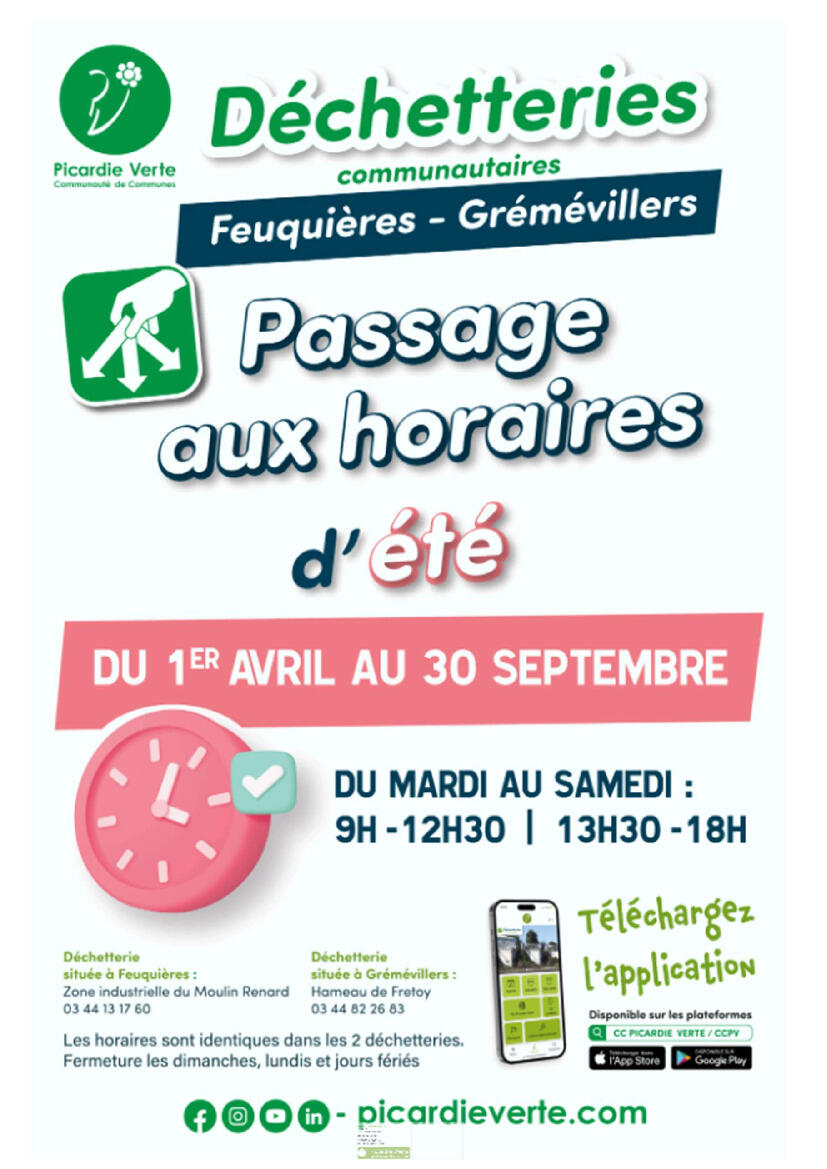 Horaires d'ouverture des déchetteries