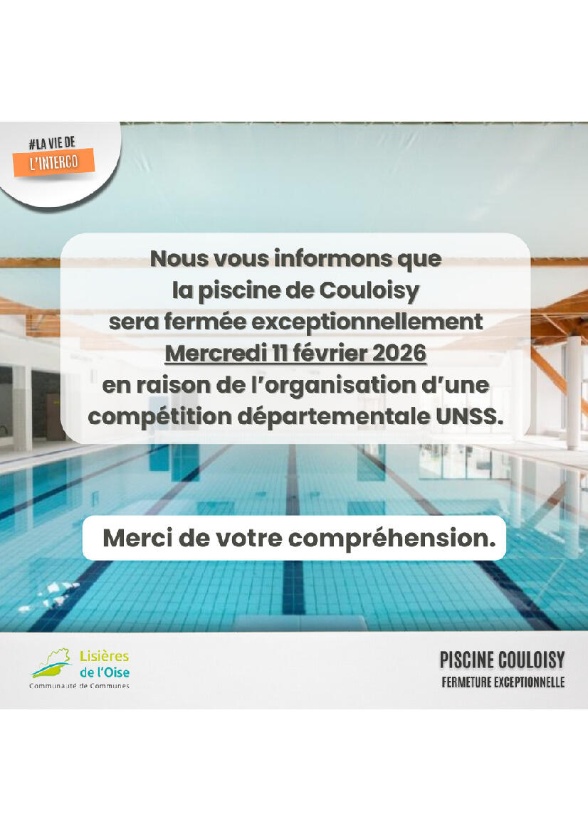 La CCLO nous informe que la piscine de Couloisy sera exceptionnellement