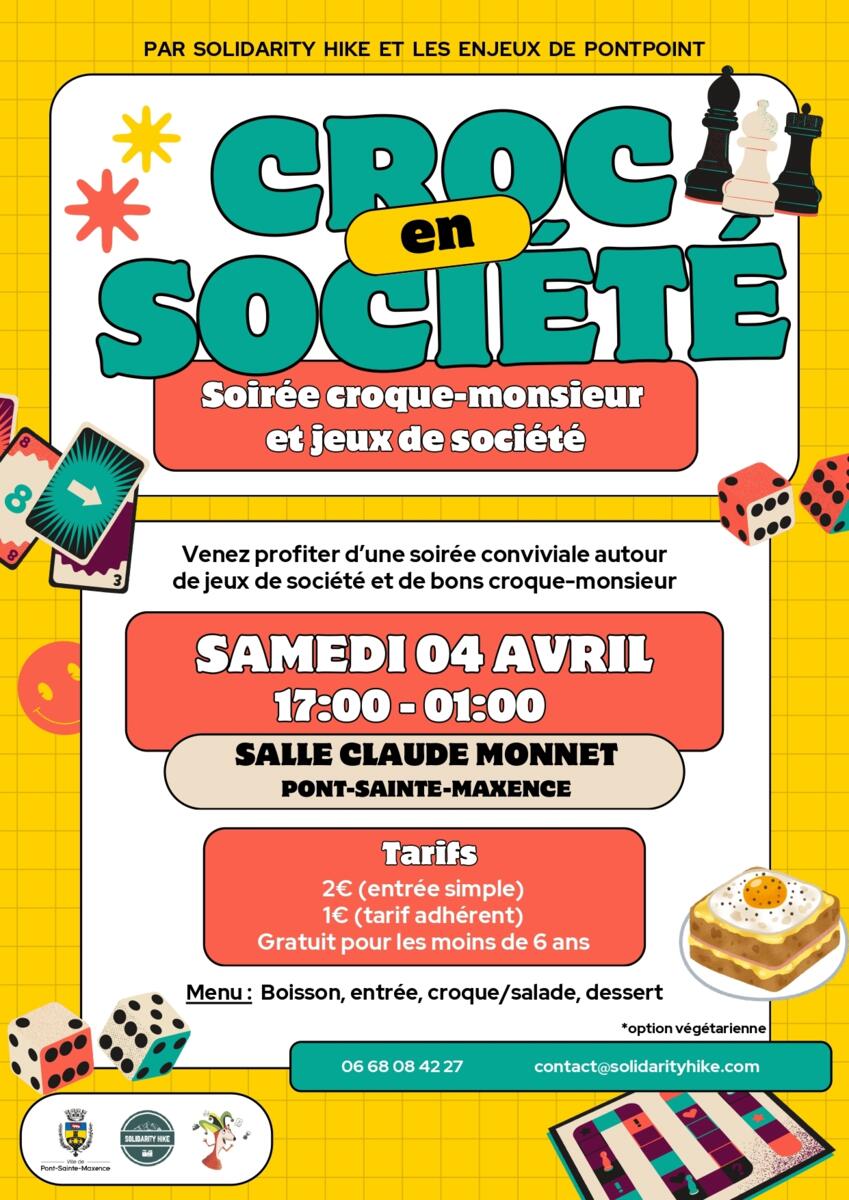 L'association Solidarity Hike organise une nouvelle soirée "croc en société", le samedi 4 avril à partir de 17h à la salle Claude Monnet.