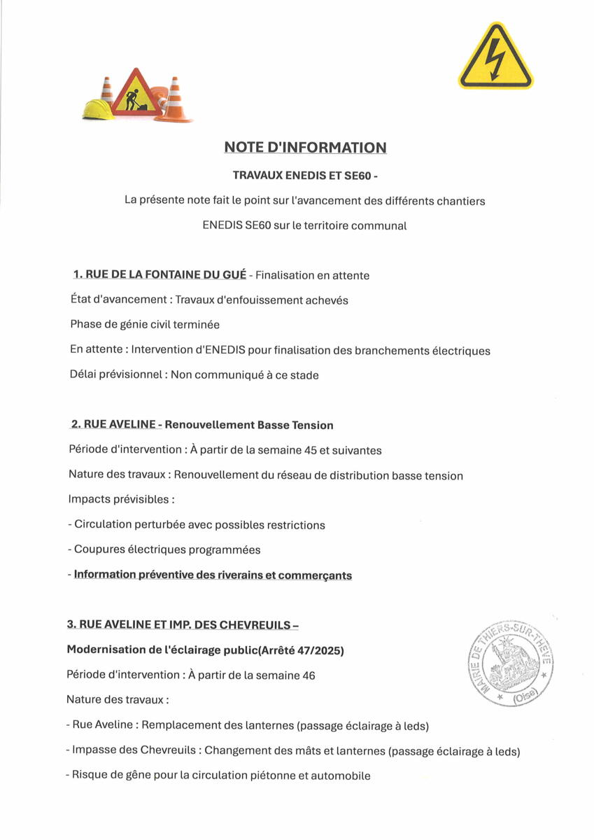 NOTE D'INFORMATION TRAVAUX ENEDIS ET SE 60 SUR LA COMMUNE