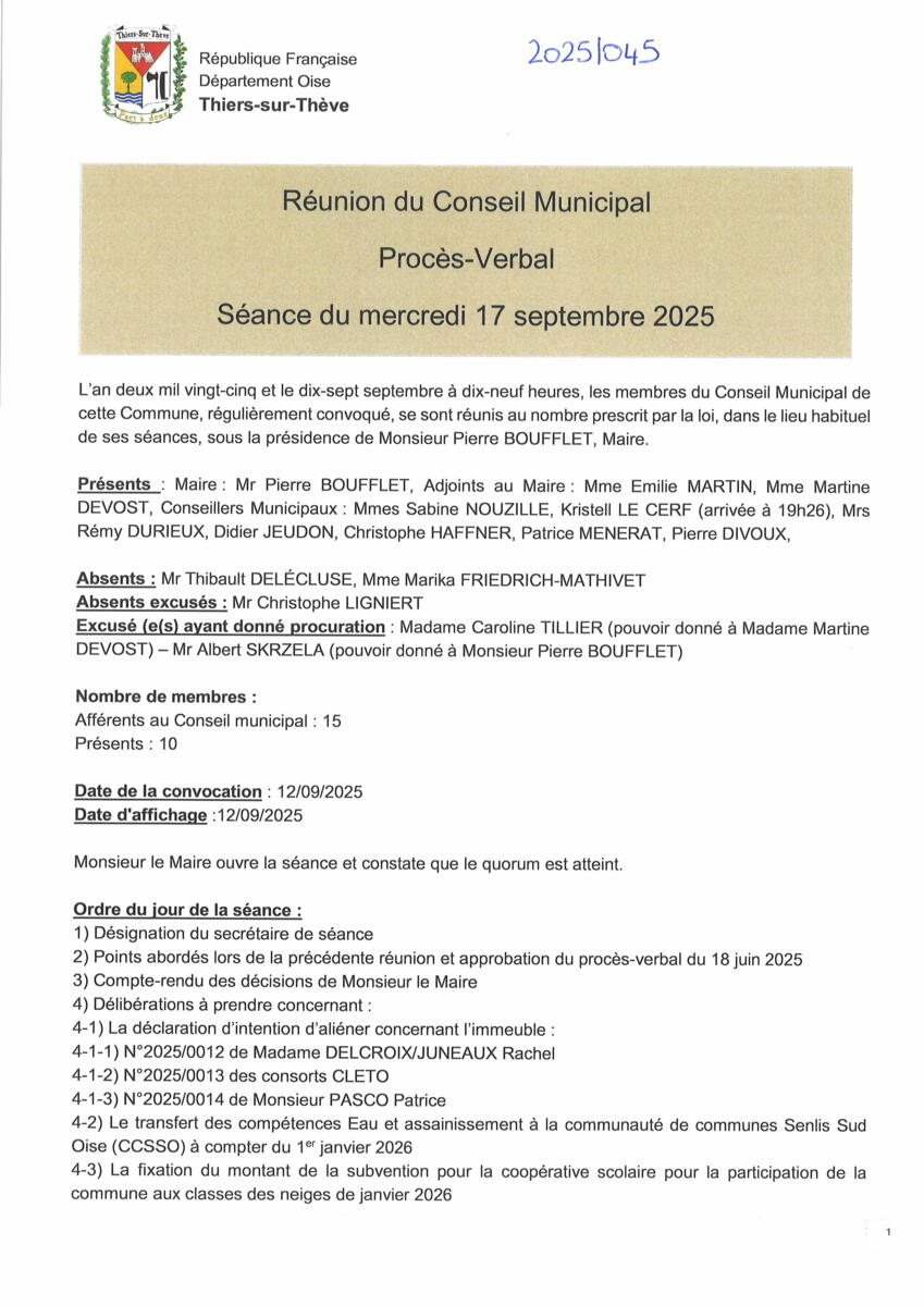 PROCES-VERBAL - RÉUNION CONSEIL MUNICIPAL 17 SEPTEMBRE 2025