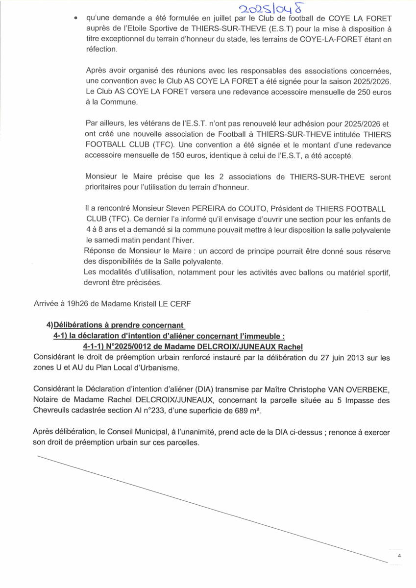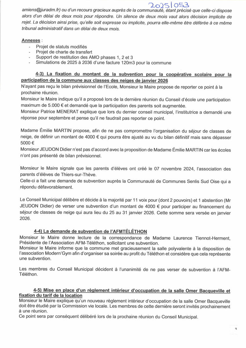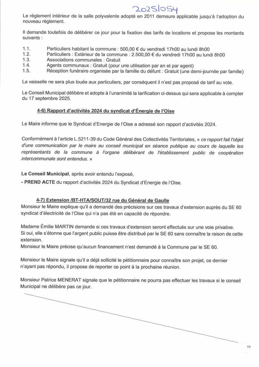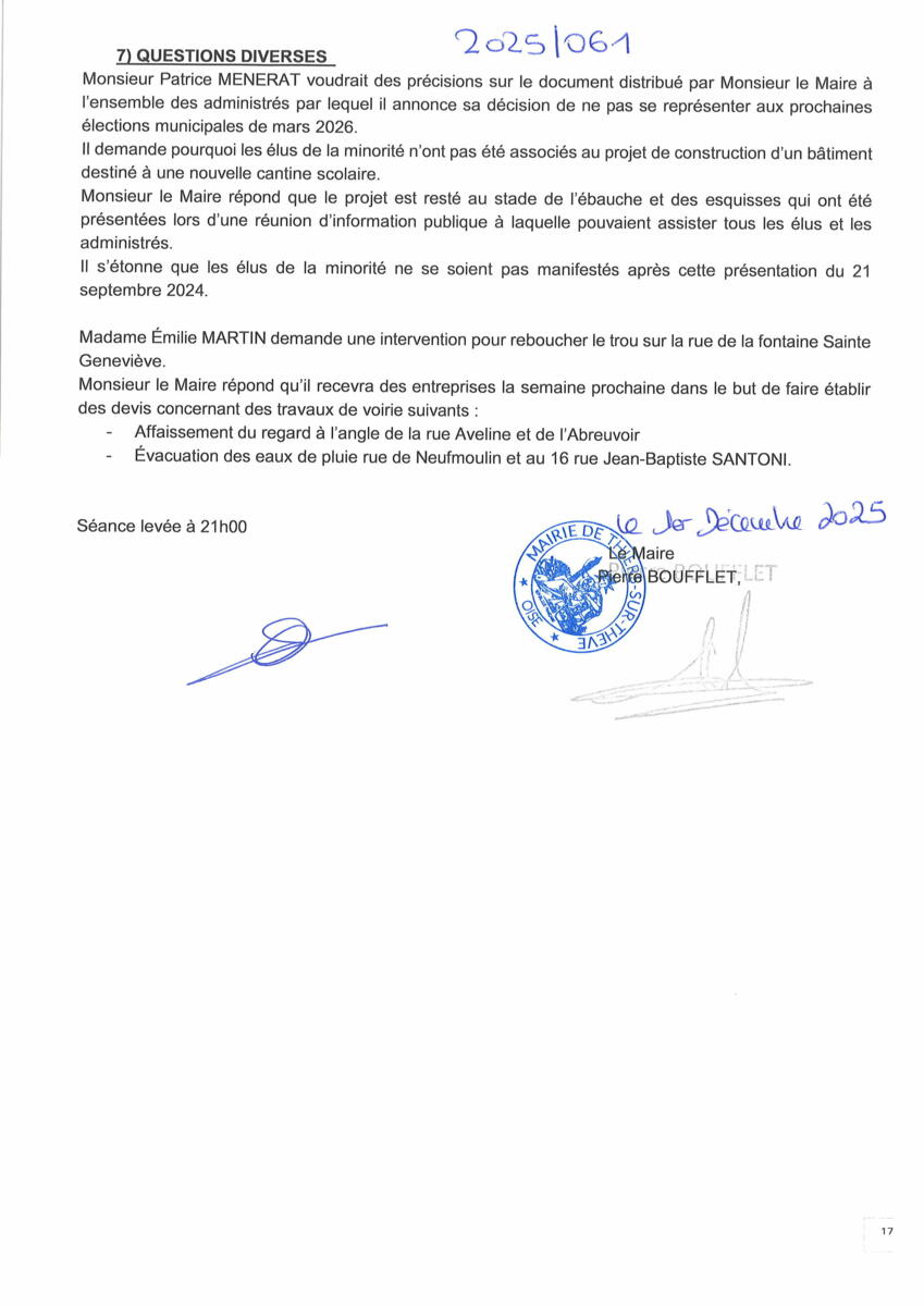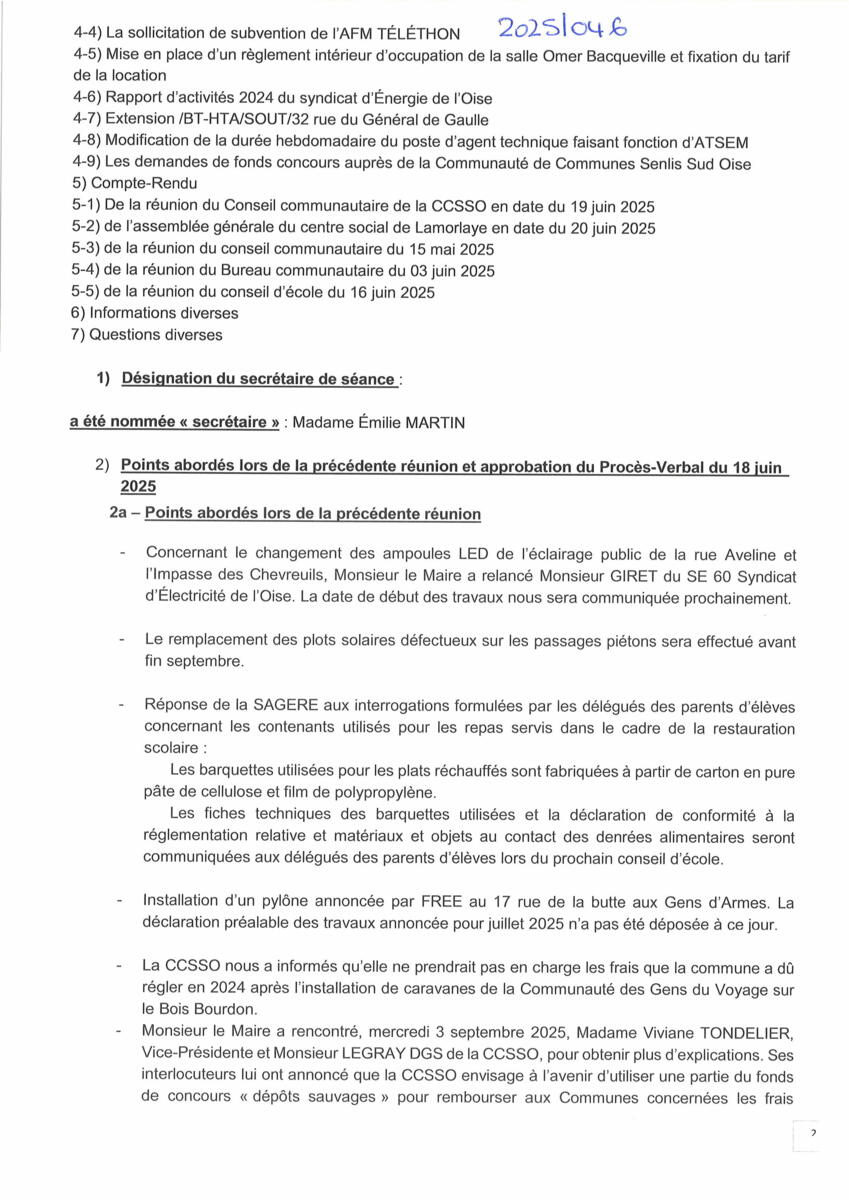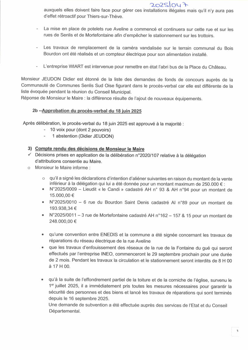 Vous trouverez ci-dessous le procès-verbal du conseil municipal du 17 septembre 2025.